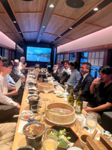 2024年7月18日、暑さの増す中、天満橋近くの八軒家浜から屋形舟に乗り込み、川辺での涼をとりつつ会員同士の親睦を図りました。コロナでの自粛期間中は、舟は密になるためになかなか実施がしにくかったのですが、そうしたことも気にせずに会員同士の交流を楽しむことができました。