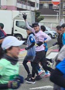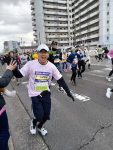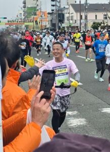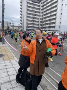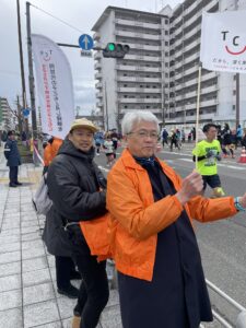 3名の会員がチャリティーランナーとして出走し、8名の会員が27km地点にて沿道応援を実施しました。